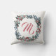 Coussin Monogramme Bleu rouge Baies d'aquarelle