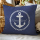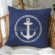 Coussin Monogramme d'Ancre marine bleu et blanc Preppy