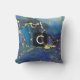 Coussin Monogramme d'art Turquoise et liquide or bleu viol