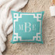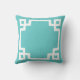 Coussin Monogramme de clé grecque turquoise et blanche