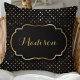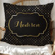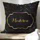 Coussin Monogramme de confetti à pois noire et or