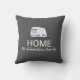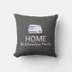 Coussin gris-foncé moderne d'aventure de vacances de voyage. Illustration d'un coussin de nom de monogramme de famille de MAISON de caravane.