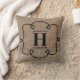 Coussin Monogramme de famille de toile de jute de Faux