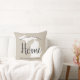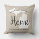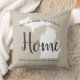 Un oreiller personnalisé Michigan Home sur un fond beige chaud avec la silhouette de l'état blanc et un overlay Home en écriture cursive. Le nom de famille et la ville personnalisables créent un monogramme significatif dans une palette classique et terreuse, avec des bandes coordonnées au verso. Un cadeau intemporel pour les familles du Michigan qui aiment la décoration de fierté de l'état neutre et chaude.