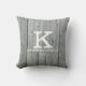 Des oreillers sont jetés dans un style maison de ferme avec un arrière - plan rustique en bois gris. Personnalisez le pays chic lancer l'oreiller avec votre monogramme initial, nom de famille et année établie.