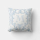 Coussin Monogramme de la floraison des torrents bleu blanc