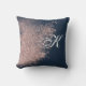 Ce magnifique coussin moderne en or bleu marine et rose présente un monogramme de scénario facile à personnaliser. La parties scintillant en or rose Faux embellit l'avant et le rend parfait pour une chambre à coucher, un espace artisanal, un espace de vie ou un bureau à domicile. Un solide look rose or métallique se trouve à l'arrière du coussin. Amusez-vous à décorer votre espace !