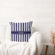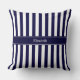 Coussin Monogramme de nom de ruban bleu marine à rayure bl