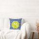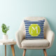 Coussin Monogramme de rayure de bleu marine et de vert de
