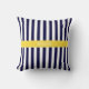 Étiquette de monogramme de ruban jaune pineapple à motif rayé bleu marine et blanc