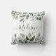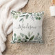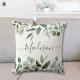 Apportez la nature à l'intérieur avec cet élégant coussin ! Avec des feuilles de eucalyptus et des feuilles tropicales et un monogramme en écriture personnalisée, il convient parfaitement à un espace inspiré de la verdure.
