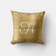 Créez votre propre carré monogramme personnalisé girly jetez un oreiller pour elle. Maillot et graphisme art numérique couleur or et jaune or foncé dégradé le long des bords supérieur et inférieur. Customisez le monogramme décoratif noir et blanc avec un design élégant de style signature calligraphie. Vous pouvez customiser et modifier le style de police ou la couleur que vous préférez. Tous les effets de parties scintillant brillants et brillants satinés s'impriment comme une photo sur votre cadeau.