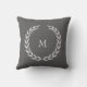 Coussin gris-foncé rustique de monogramme de texture de toile de jute de guirlande olive moderne.