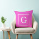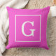Coussin Monogramme Initial Cadre Rose Chaud Blanc