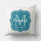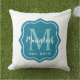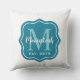 Coussin Monogramme Initial de Famille Élégant Sarcelle