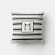 Coussin Monogramme initial sur fond blanc avec rayure gris