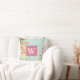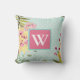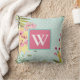 Coussin Monogramme | Jardin floral, Arrière - plan bleu