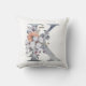 Coussin Monogramme K, Aquarelle Florale Bleu Pêche Blanc