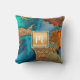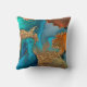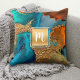 Coussin Monogramme marbre aquarelle or turquoise orange