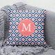 Coussin Monogramme Marine Bleu Diamants de corail Ikat Mot