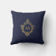 Coussin Monogramme Marine Bleu Faux Or Élégante crête Vint