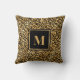 Coussin Monogramme moderne Empreinte de léopard d'or noir