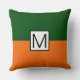 Coussin Monogramme Moderne Orange et Vert Élégant
