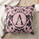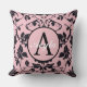 Coussin Monogramme moderne Rose rose et noir Damask