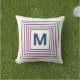 Cet amusant oreiller extérieur a une touche contemporaine sur la gamme classique de couleurs rouge blanc et bleu. Des carrés abstraits propres créent un monogramme coloré et personnalisable. Ajoutez votre famille initiale pour créer un patriotique personnalisé en dehors du coussin pour vos célébrations 4 juillet et pour le reste de la saison estivale.