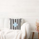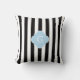 Coussin Monogramme noir blanc rayures bleu clair Quatrefoi