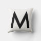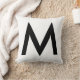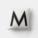 Coussin décoratif avec monogramme noir élégant sur fond blanc. La lettre M peut être personnalisée.