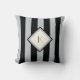 Ce coussin élégant et moderne de style vient dans l'argent audacieux et élégant et les rayures noires. Un diamant en ivoire avec de l'argent et une frontière noire est au centre du coussin, et vous pouvez le personnaliser avec votre propre initiale ou monogramme de style d'art déco. Perfectionnez pour un charme, snob, les années 1920 regardent !