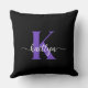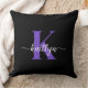 Ce simple et élégant oreiller noir 20 pouces jettent avec votre prénom dans une police de script tendance en blanc et votre première initiale dans une police casquette moderne en violet est parfait pour vous. C'est design, tendance et pourtant très classique. Il aura l'air fabuleux dans votre chambre, salon, salle d'observation, elle remise.