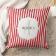 Coussin Monogramme personnalisé rouge et blanc de Noël