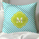 Coussin Monogramme rayé turquoise et vert