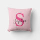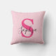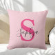 Cette conception personnalisée d'oreiller à lancer comprend une couleur arrière - plan rose pâle. Ce design moderne, tendance et tranquille comprend également votre nom monogrammé avec des lettres noires et roses chaudes. Bon appétit !