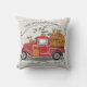 Ce coussin de style campagnard comporte un camion vintage rouge supportant une charge des citrouilles récemment récoltés. Les flourishes verts décoratifs accentuent le nom de famille ci-dessus et une initiale de monogramme sur le dos. Un recouvrement en bois de texture donne au coussin un regard rustique. Fait une addition élégante à votre décor d'automne.