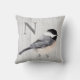 Un petit oiseau doux et précieux en aquarelle aux couleurs douces donne le ton à ce simple coussin monogramme rustique qui s'ajoute à votre décor.