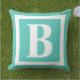 Laissez votre décor de patio d'été avec ce Monogramme Turquoise lumineux Initial Grand Coussin extérieur. Customisez à n'importe quelle couleur. Les deux côtés du coussin sont turquoises et ont un gros monogramme blanc gras premier encadré avec une large bordure blanche. Aussi disponible en différentes tailles. CLIQUEZ SUR PERSONNALISER L'OPTION MODÈLE ET ENTREZ MONOGRAM.