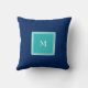 Monogramme turquoise coloré solide moderne de famille de bleu marine, initiale, coussin.