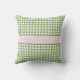 Un coussin mignon de monogramme de guingan de vert de style campagnard avec un étiquette rose de guingan et un ruban rose en filigrane girly. Personnalisez en ajoutant votre nom et initiales. Fera appel à la fille élégante et féminine.