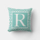 Coussin Monogrammes Turquoise Bleu Blanc Poka Dots Cadeau