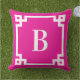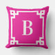 Bordure carré de style magenta rose chaud et blanc style grec avec un monogramme serif moderne. Customisez ce design contemporain en choisissant votre combinaison de couleurs préférée. Modifiez le style, la taille ou la couleur de la police selon vos besoins. Associez cette teinte de bleu à votre décor de maison. Transférer cette conception ? Vérifiez la catégorie Greek Key dans mon magasin pour les autres formes et tailles d'oreillers... ainsi que d'autres cadeaux de décoration maison.