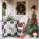 Pins noirs et blancs rustiques modernes à motif de Noël en plein air jettent oreiller. Vous pouvez le personnaliser et ajouter votre propre monogramme. Joli coussin pour la saison des Fêtes.