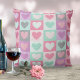 Cette conception colorée d'oreiller à lancer présente un collage de coeurs dans une gamme de couleurs allant de l'aqua à la lavande, rose et rouge. Parfait pour la Saint Valentin ou même comme cadeau fiançailles ! Recherchez ID629 pour voir d'autres produits avec cette conception.