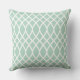 Le design carré de coussin d'accents est doté d'un élégant motif de charpente de treillis en diamant ondulé. Les couleurs sont blanches et bleu menthe vert