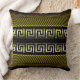 Cet oreiller de lancer carré a une illustration uniforme de l'art traditionnel de la ligne de méandre de la Key grecque, rayonnant une interaction entrelacée de motifs de ton blanc et or contre un arrière - plan de toile noire solide, créant un contraste classique et une esthétique de couleur.
