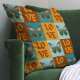 Posez votre tête sur ce Motif d'amour papillon | Oreiller à lancer bleu et orange. Un beau motif géométrique de carrés papillons alternant avec le mot : Amour. Une excellente idée cadeau pour les amateurs de papillons.