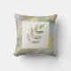 Coussin avec arrière - plan aquarelle et feuilles à motifs aléatoires et agrumes. Personnalisez sur le dos avec le nom initial et le nom de famille monogrammés.