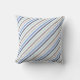 Cette coussin moderne à rayures colorées présente des rayures diagonales dans les tons bleu, vert menthe pâle et marron sur un arrière - plan blanc.